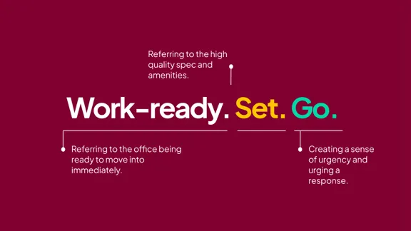 Focusing on the immediate availability as a core USP for the campaign, we envisioned a vibrant brand that needed to be attention grabbing, dynamic and modern. Work-ready to meet the demands of modern business. Get set, go.