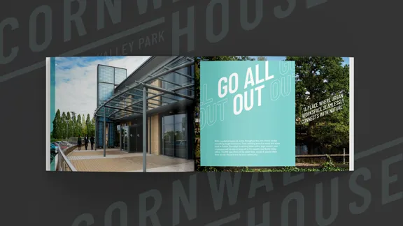 We created an energetic identity and recognisable colour palette that makes a statement and really sets Cornwall House apart from the typical commercial property branding style. The campaign concept was based on ‘It’s all here’ and influenced the whole narrative. The was all then rolled out in unique ways across other buildings throughout Blythe Valley.